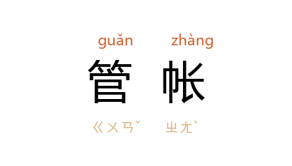 ⒈ 亦作“管账”。管理帐目。引申指管理一般事务。