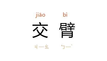 ⒉ 旧时罪犯双手被交叉绑在背后,称为「交臂」。