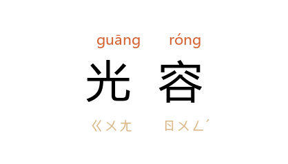 引唐 裴铏 《传奇·昆仑奴》:“所愿既申,虽死不悔,请为僕隶,愿侍光容。”宋 陈师道 《钦慈皇后挽词》之一:“未有如椽笔,光容可得陈。”明 袁宏道 《途中怀大兄诗》:“光容若平昔,天服粲游戯。”