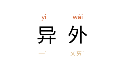 引宋 苏轼 《上神宗皇帝书》:“今若多开骤进之门,使有异外之得,公卿侍从,跬步可图。”叶紫 《夜哨线》一:“他的过于性急的心情,不给稍为压制一下,难免要闹出异外的乱子的。”康濯 《东方红》第二章:“山凹和崖底更神奇异外地出现了一些水利工程。”
