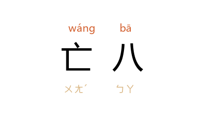 引胡也频 《光明在我们的前面》二一:“还有许多小孩子,他们会悄悄的把一张纸条贴在那外国货的衣服上,上面画着一只‘亡八’。”