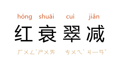 ⒈ 红,红花。翠,绿叶。红衰翠减形容花木凋残的景象。