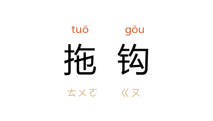 引南朝 梁 宗懔 《荆楚岁时记》:“拖鉤之戏,以綆作篾缆相罥,绵亘数里,鸣鼓牵之。”唐 张说 《奉和观拔河应制诗》:“今岁好拖鉤,横街敞御楼。”