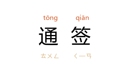 宋 曾巩 《请给事中书舍人印合与不合通签中书外省事札子》:“若将来常侍以下至正言员足,消与未消,逐一通签。如不通签,即未审合係是何官书判施行。”