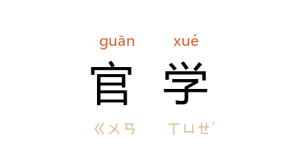 ⒈ 旧时官府设立的学校。官方奉行的学说。