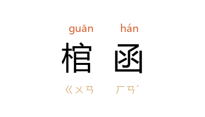 引元 岳伯川 《铁拐李》第二折:“怕你子母每受穷时典卖盘缠,比如包尸裹骨棺函内烂。”元 王伯成 《哨遍·赠长春宫雪庵学士》套曲:“因见无常,谩劳供养看经懺,虽有六亲人,谁能替入棺函。”元 石德玉 《曲江池》第二折:“他紧靠定那棺函儿呢。”