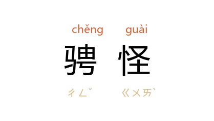 引唐 韩愈 孟郊 《城南联句》:“泥像对骋怪,铁鐘孤舂鍠。”钱仲联 集释引 孙汝听 曰:“骋怪,谓鬼神奇怪之状。”唐 白居易 《太湖石记》:“然而自一成不变以来,不知几千万年,或委海隅,或沦湖底,高者仅数仞,重者殆千钧,一旦不鞭而来,无脛而至,争奇骋怪,为公眼中之物。”