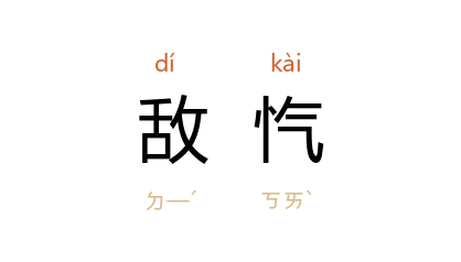 引《左传·文公四年》:「诸侯敌王所忾,而献其功。」《东周列国志·第七一回》:「安得穰苴今日起,大张敌忾慰苍生。」