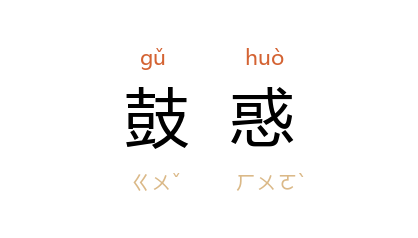 引宋 俞文豹 《吹剑四录》:“道学之魁,鼓惑天下,乞毁语録之类。”《封神演义》第六七回:“大肆邪説,鼓惑将士,此为妖军。”郑伯奇 《最初之课》:“你讲他不该这样鼓惑学生,他说,这是他们的大政方针。”