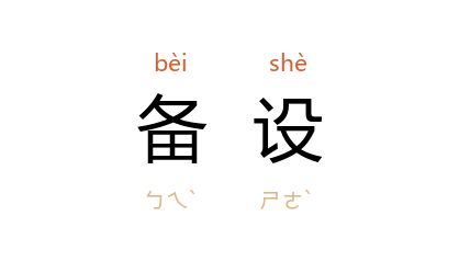 引汉 祢衡 《鹦鹉赋》:“虽网维之备设,终一目之所加。”唐 康骈 《剧谈录·韦颛枭鸣》:“报 光 成名者络绎而至, 顓 则无登第之耗。 光 延之於堂际小阁,备设肴饌慰安之。”《宋史·乐志三》:“於坛之北,备设宫架,鐘、匏、竹各列二坛。”清 王士禛 《池北偶谈·谈异七·女侠》:“有厅廨三间东向,牀榻备设。”