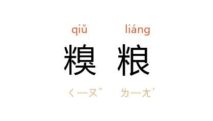 引《书·费誓》:“峙乃糗粮,无敢不逮。”孔 传:“皆当储峙汝糗糒之粮,使足食。”《吕氏春秋·悔过》:“惟恐士卒罢弊与糗粮匱乏。”唐 柳宗元 《兴洲江运记》:“糗粮、芻藁,填谷委山。”《新五代史·南唐世家·李景》:“淮 人大悦,皆负糗粮,以送 周 师。”