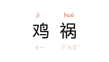 引《汉书·五行志中之上》:“时则有服妖,时则有龟孽,时则有鸡旤。”颜师古 注:“旤与祸同。”《隋书·五行志上》:“鸡祸……鸡鸣不鼓翅,类腋下有物而妨之,翮不得举。”清 钱谦益 《病榻消寒杂咏》之十四:“鼓妖鸡旤史频书,孛入杓中自埽除。”