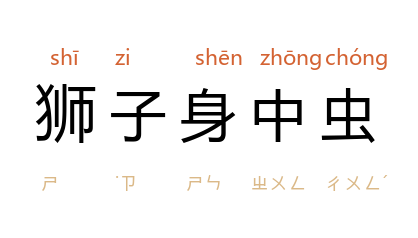 ⒈ 佛教语。比喻从内部破坏佛法的僧团中的败类。语出《莲华面经》卷上:“阿难,譬如师子命绝身死,若空、若地、若水、若陆所有众生,不噉食彼师子身肉,唯师子身自生诸虫,还自噉食师子之肉。