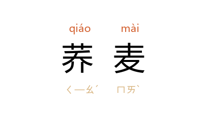 ⒈ 一年生草本植物。茎赤质柔。叶互生,呈心脏形,有长柄。花色白或淡红。果瘦三角形,有棱。子实磨成粉可制面食。通常亦称其子实为荞麦。
