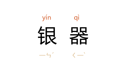 引《南齐书·萧颖胄传》:“后预曲宴,银器满席。”《宋史·儒林传一·聂崇义》:“五月,赐 崇义 紫袍、犀带、银器、繒帛以奬之。”明 李时珍 《本草纲目·金石一·银》:“今人用银器饮食,遇毒则变黑。”