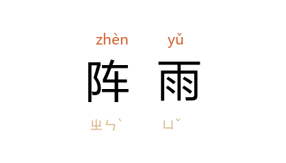 ⒈ 降雨时间短暂,雨势时大时小,开始和结束都很突然的雨。阵雨降自积状对流云,以中、低纬度地区的夏季最常见。常伴随著闪电与雷声。
