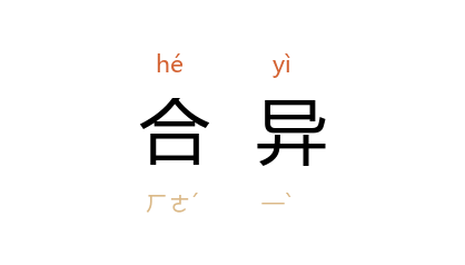 引《庄子·则阳》:“合异以为同,散同以为异。”晋 杜预 《<春秋经传集解>序》:“或依经以辩理,或错经以合异。”晋 葛洪 《抱朴子·嘉遁》:“离同则肝胆为 胡 越,合异则万殊而一和。”