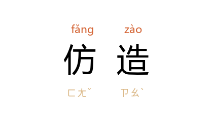 ⒈ 亦作“倣造”。模仿一定的式样制造。见“仿造”。