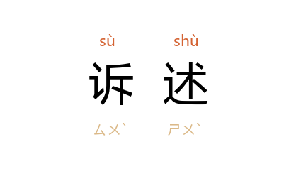 引郭沫若 《蔡文姬》第四幕第三场:“我弹的不是靡靡之音,我唱的也不是 桑间、濮上 之辞,我所弹的唱的就是我自己做的《胡笳十八拍》,是诉述自己的悲哀。”柳青 《<创业史>题叙》:“他们诉述着大体上类似的不幸,哀告救命。”