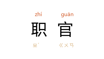 ⒈ 文武百官的通称。如史籍、政书多有职官志、职官考之类。
