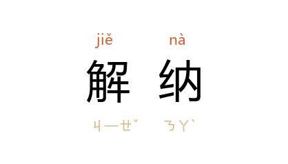 引《元典章·户部八·契本》:“即今遵守契本必用纸张颜料之物,改收 至元 钞三钱,明开另项解纳,不在增酬之数。”明 沉榜 《宛署杂记·宫庄子粒》:“有解纳太僕寺者,牧马草场银肆拾玖两玖钱壹分肆厘。”《明史·刘体乾传》:“帝尝问九边军餉、太仓岁发及四方解纳之数。”