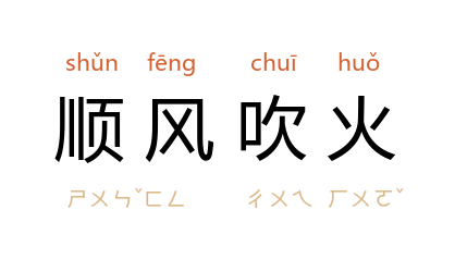 ⒈ 顺著风势吹火。比喻趁著有利的形势做事。汉·焦延寿也作「因风吹火」。