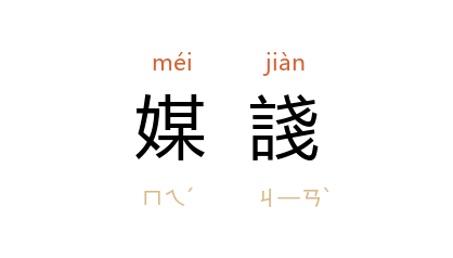 引《梁书·刘孝绰传》:“但未渝丹石,永藏轮轨,相彼工言,构兹媒諓。”《新唐书·郭子仪传》:“鱼朝恩 素疾其功,因是媒譖之。”