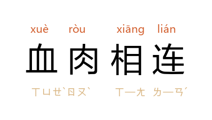 英as close as flesh and blood; be linked by flesh-and-blood ties;