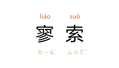 引宋 辛弃疾 《好事近·中秋席上和王路钤》词:“夜深休更唤笙歌,簷头雨声恶。不是 小山 词就,这一场寥索。”金 李之翰 《中京遇因长老》诗:“分手山堂更寥索,冷云衰草伴征鞍。”明 顾起纶 《国雅品·士品二》:“先辈便於七言者,以声长字纵,可以牵合成章也。今京师縉绅每谓七言律书轴庶不寥索,遂失作者之意。”
