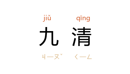 引前蜀 杜光庭 《白可球明真斋赞老君词》:“伏冀倾光三境,廻驾九清。”《醒世恒言·李道人独步云门》:“表上説道:‘陛下玉书金格,已简於九清矣。’”