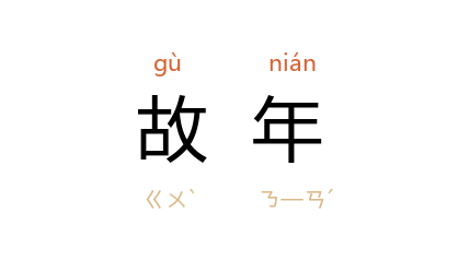 引南朝 梁 王筠 《代牵牛答织女》诗:“犹想今春悲,尚有故年泪。”唐 刘长卿 《送李侍御贬郴州》诗:“听猿明月夜,看柳故年春。”