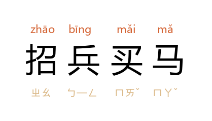 ⒈ 招募军士,购置战马。比喻组织或扩充军事力量。明·汤显祖也作「买马招军 」、「招军买马」。