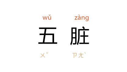 引元·秦?夫《东堂老·第三折》:「则你那五脏神也不到今日开屠。」《红楼梦·第八回》:「若冷吃下去,便凝结在内,以五脏去暖他,岂不受害。」