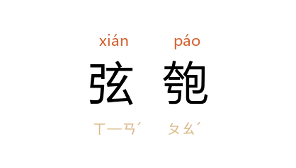 ⒊ 絃匏:弦和匏。均乐器名。古代八音中“匏曰笙,丝曰絃”,因亦泛指乐器。参见“弦匏”。