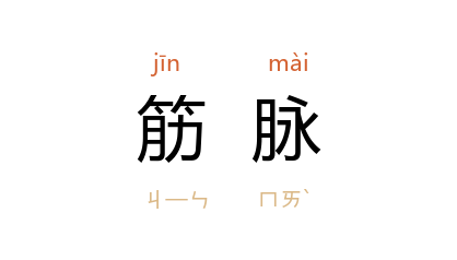 见“筋脉”。筋骨脉络。 汉 王充 《论衡·书虚》:“举鼎用力,力由觔脉;觔脉不堪,絶伤而死,道理宜也。”