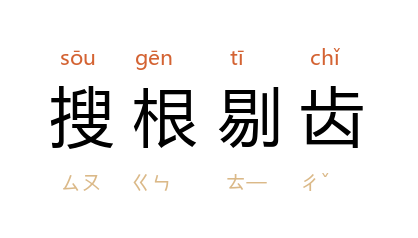 引《水浒传》第四一回:“只恨 黄文炳 那厮搜根剔齿,几番唆毒,要害我们。”《二刻拍案惊奇》卷四:“岂知 张贡生 算小,不还他体面,搜根剔齿一直説出来。”