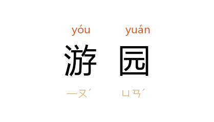 引陈毅 《颐和园五一春游纪盛》诗:“游园人过七万,风舞海棠艳浓。”周立波 《砖窑和新屋》:“不要拆掉那排破砖窑,在那儿挂一块牌子,写上这句话:‘这是国民党反动统治时期工人的宿舍’。叫工人们游园的时候,看了这砖窑,比比现在,想想从前。”《工人歌谣选·工人就是诗画家》:“人带诗画来游园,游园诗画永留下。”犹花园。 康有为 《大同书》己部第六章:“各大学皆有游园,备设花木、亭池、舟楫。”