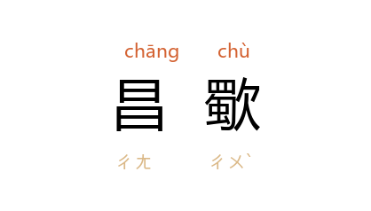 ⒉  菖蒲根的腌制品。又称昌菹。昌,通“菖”。传说周文王嗜昌歜,孔子慕文王而食之以取味。后以指前贤所嗜之物。