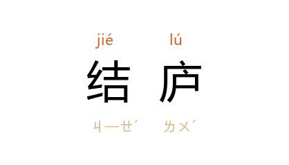 引《文选·陶渊明·杂诗二首之一》:「结庐在人境,而无车马喧。」唐·韦应物〈东郊〉诗:「终罢斯结庐,慕陶直可庶。」
