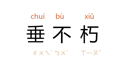 引宋 曾慥 《类说·摭言·滕王阁序》:“王勃 著《滕王阁序》时年十四,都督 阎公 不之信,令人伺其下笔……至‘落霞孤鶩齐飞,秋水长天一色’, 公 矍然曰:‘此真天才,垂不朽矣。’”明 李贽 《复焦弱侯书》:“世未有其人不能卓立而能文章垂不朽者。”