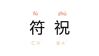 引《后汉书·刘焉传》“不置长吏,以祭酒为理,民夷信向” 李贤 注引 三国 魏 鱼豢 《典略》:“太平道师持九节杖,为符祝,教病人叩道思过,因以符水饮之。”宋 苏轼 《赠眼医王生彦若》诗:“常疑子善幻,他技杂符祝。”清 焦循 《忆书》卷二:“鍊笔録之术,相传以前辈能文者一人为主,斋戒持符祝四十九日,其鬼即来附於腕下。”