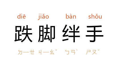 引《孽海花》第二八回:“自从第一步踏上了社会的战线,只觉得面前跌脚绊手的佈满了敌军,第二步再也跨不出。”