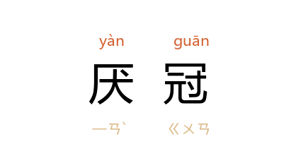 引《礼记·檀弓上》:“国亡大县邑,公卿大夫皆厌冠,哭於大庙三日,君不举。”郑玄 注:“厌冠,今丧冠。”《礼记·曲礼下》:“苞屨、扱衽、厌冠,不入公门。”