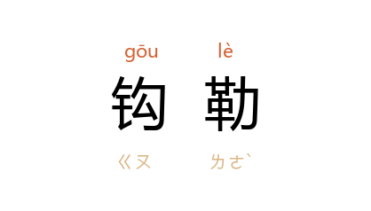 ⒉ 国画的一种技法。用笔顺势为钩,逆势为勒;也有以单笔为钩,复笔为勒的。一般不分笔势顺、逆或单、复,凡以线条钩画物象轮廓,统称钩勒。