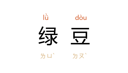 ⒈ 植物名。豆科菜豆属,一年生草本。高约三十多公分,茎瘠长,有毛。顶生叶卵状菱形,为三出复叶。总状花序,开黄色蝶形花,花谢结线形荚果。荚果内含绿色种子,可供食用,无论煮汤或磨粉制成糕饼都很可口。也作「菉豆」。
