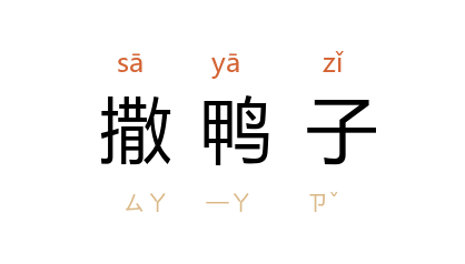 例如:「他发觉情况不妙,撒鸭子往山上跑了。」