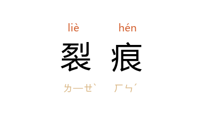 例如:「这次地震后,墙壁上有了一道裂痕。」
