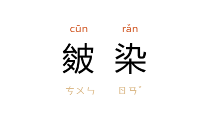 引《红楼梦》第四二回:“那雪浪纸,写字,画写意画儿,或是会山水的画南宗山水,托墨,禁得皴染。”清 李斗 《扬州画舫录·草河录下》:“﹝ 孙人俊 ﹞以画驴得名,山水学 巨然,画古树皴染得古人法则。”