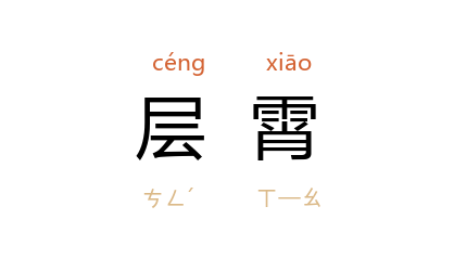 引晋 庾阐 《游仙诗》之三:“层霄映紫芝,潜涧汎丹菊。”唐 李白 《大猎赋》:“彼层霄与殊榛,罕翔鸟与伏兔。”明 徐弘祖 《徐霞客游记·粤西游日记》:“东上入石峡,峡两峰中剖,上摩层霄,裂罅相距不及丈。”郑泽 《读钝庵红薇感旧记作》诗:“金风吹素节,阴曀幔层霄。”