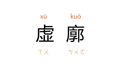 引《淮南子·天文训》:“道始于虚霩,虚霩生宇宙,宇宙生气。”三国 魏 曹植 《驱车篇》:“飡霞漱沆瀣,毛羽被身形。发举蹈虚廓,径廷升窈冥。”晋 傅玄 《大寒赋》:“彩虹藏于虚廓兮,鳞介潜而长伏。”